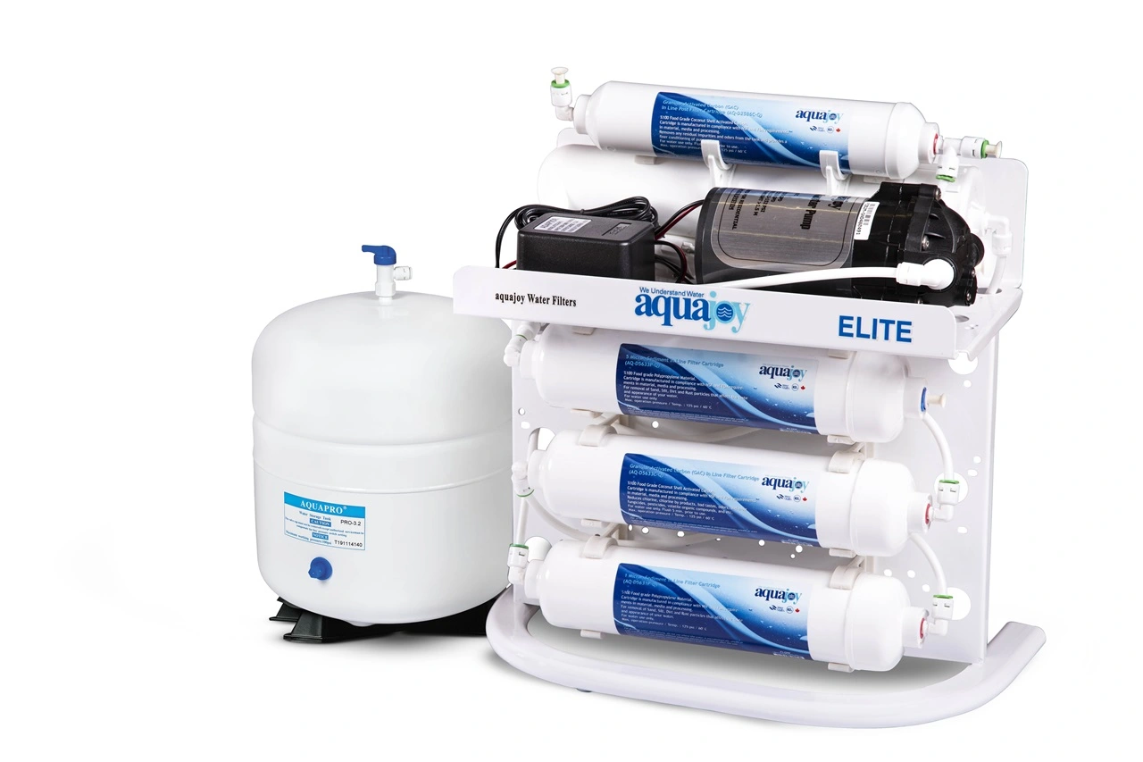 دستگاه تصفیه آب خانگی آکواجوی مدل الیت مطابق با تكنولوژی RO ( اسمز معكوس يا آب شيرين كن ) براي محل هايی كه آب ورودی دارای مقادير بيش از حد نرمال جامدات محلول می باشد طراحی شده است.